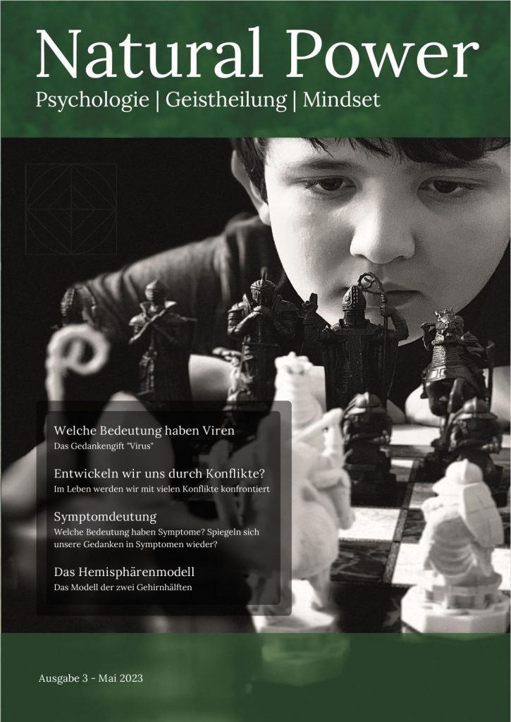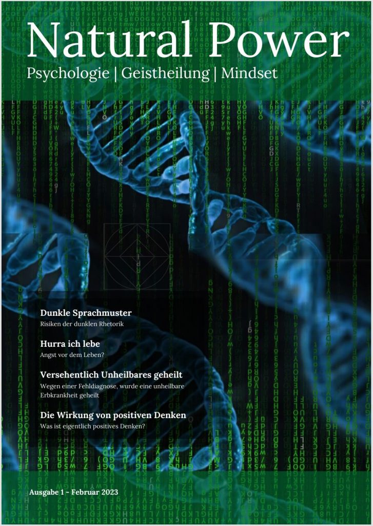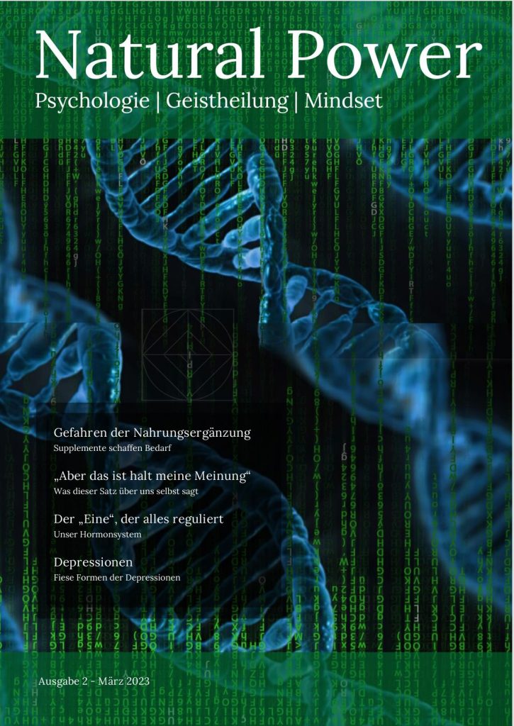 Mit der „Zeitschrift“ Natural Power möchte ich meine Gedanken, Vorstellungen und Ideen zusammenfassen und dem Leser zur Verfügung stellen. Die Inhalte basieren teils auf Informationen aus wissenschaftlichen Publikationen, eigenen Erfahrungen, Fortbildungen und Büchern. Es sind Teile der anerkannten Psychologie, Psychoneuroimmunologie, der Genetik, Epigenetik, Theologie, aber auch aus Schamanismus, Geistheilung und anderen nicht anerkannten „Verfahren“ enthalten.